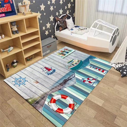 Transform your child’s room into a whimsical seafaring adventure with the Little Sailor's Journey Carpet. Featuring a charming design of a ship navigating through serene waters, this rectangular carpet is perfect for sparking creativity and bringing a sense of exploration to your child's play area.